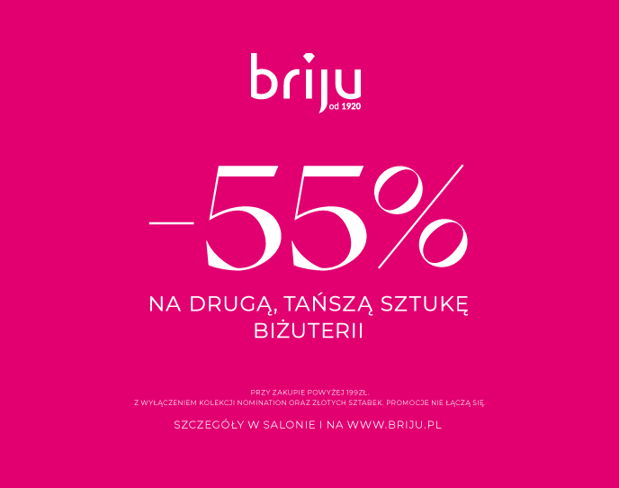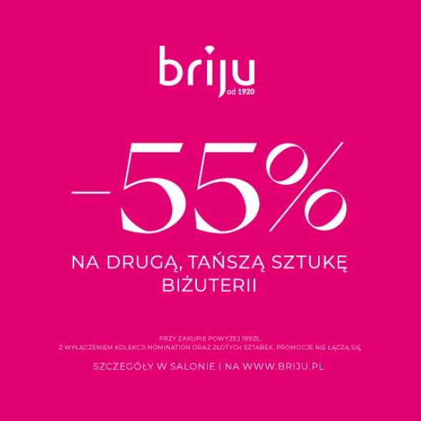 Tylko do 31.07 skorzystaj z oferty: -55% na drugą, tańszą sztukę biżuterii! (Promocja nie obejmuje: Kolekcji Nomination, złotych sztabek, obrączek złotych i akcesoriów.)
