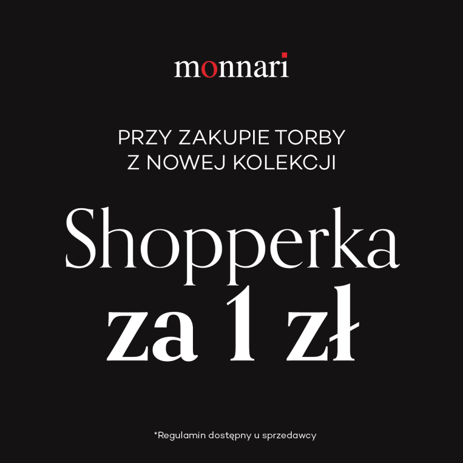 Przy zakupie torby z nowej kolekcji w Monnari możesz kupić elegancką shopperkę za jedyne 1 zł. Zyskaj dodatkową, stylową torbę w wyjątkowej cenie i uzupełnij swoją kolekcję o praktyczny dodatek.